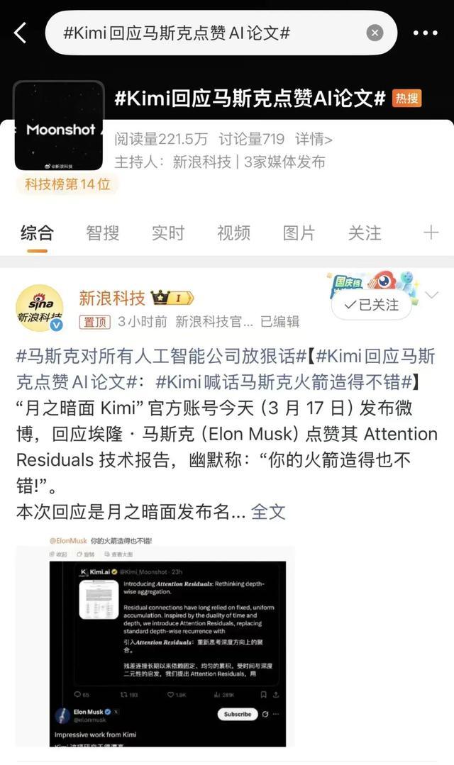 这边硅谷的点赞刚没完,隔天Kimi就在微博上演了一波高情商回怼——哦不,回赞!一句“你的火箭造得也不错!”直接把跨洋互动的趣味性拉满,网友直呼“这波回应太会了”。