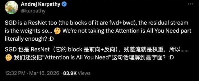 不光马斯克,业内大佬们纷纷表示认可,直呼这是“深度学习2.0”的开端,就连前OpenAI联合创始人Andrej Karpathy都感慨:“看来我们还没把‘Attention is All You Need’这句话按字面意思理解透。” Karpathy认为,Kimi团队的创新不仅挑战了现有的深度学习架构,还推动了注意力机制在大规模模型中的进一步应用。